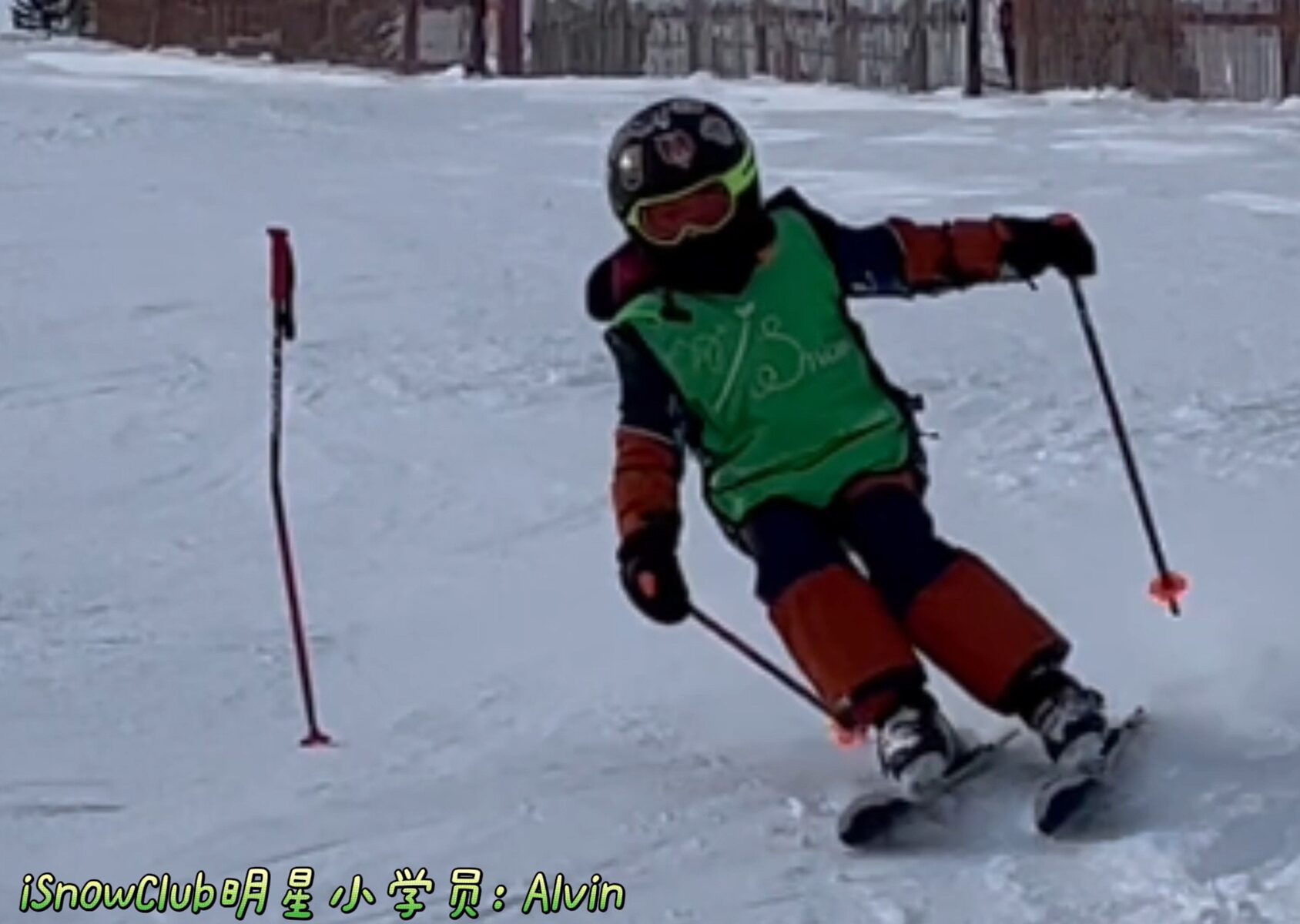 5岁的时候,在iSnow春假营迅速学会了carving。6岁进入速滑队露头角。 在iSnow 几次私课继续提高之后,超越了7岁组队友勇夺冠军。 Alvin的滑行可谓酣畅淋漓: